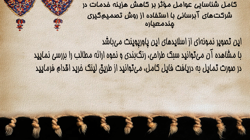 پاورپوینت کامل شناسایی عوامل مؤثر بر کاهش هزینه خدمات در شرکتهای آبرسانی با استفاده از روش تصمیمگیری چندمعیاره