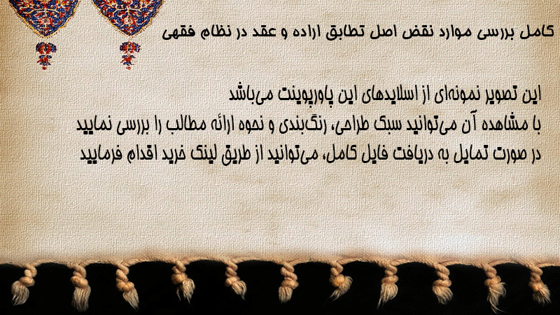 پاورپوینت کامل بررسی موارد نقض اصل تطابق اراده و عقد در نظام فقهی