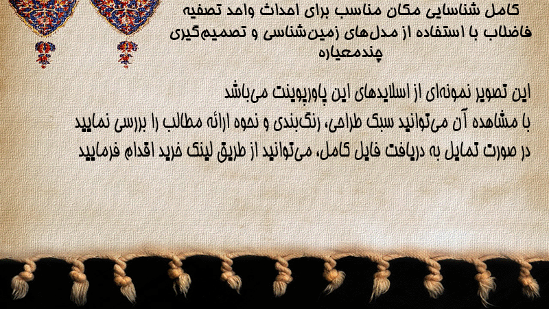 پاورپوینت کامل شناسایی مکان مناسب برای احداث واحد تصفیه فاضلاب با استفاده از مدلهای زمینشناسی و تصمیمگیری چندمعیاره