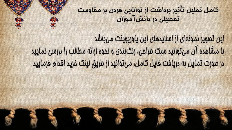 پاورپوینت کامل تحلیل تأثیر برداشت از توانایی فردی بر مقاومت تحصیلی در دانشآموزان
