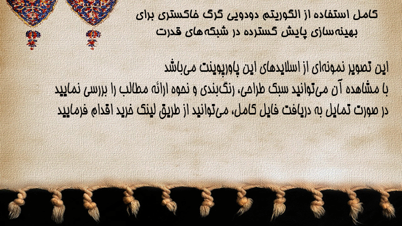 پاورپوینت کامل استفاده از الگوریتم دودویی گرگ خاکستری برای بهینهسازی پایش گسترده در شبکههای قدرت