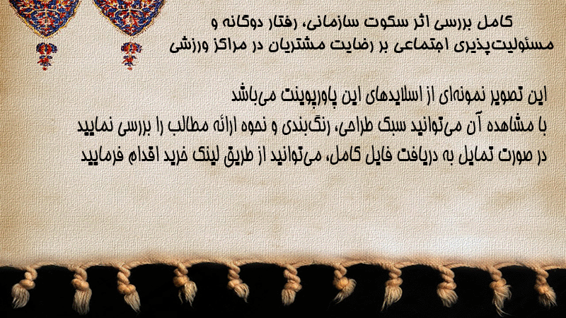 پاورپوینت کامل بررسی اثر سکوت سازمانی، رفتار دوگانه و مسئولیتپذیری اجتماعی بر رضایت مشتریان در مراکز ورزشی