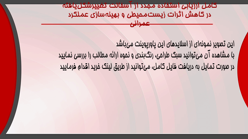 پاورپوینت کامل ارزیابی استفاده مجدد از آسفالت تغییرشکلیافته در کاهش اثرات زیستمحیطی و بهینهسازی عملکرد عمرانی