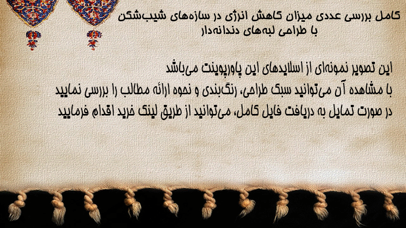 پاورپوینت کامل بررسی عددی میزان کاهش انرژی در سازههای شیبشکن با طراحی لبههای دندانهدار