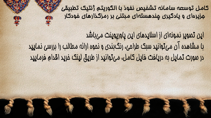 پاورپوینت کامل توسعه سامانه تشخیص نفوذ با الگوریتم ژنتیک تطبیقی جزیرهای و یادگیری چندهستهای مبتنی بر رمزگذارهای خودکار