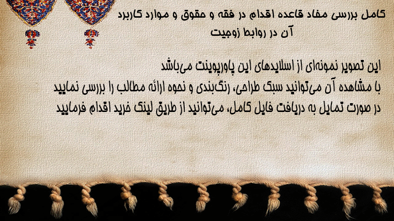 پاورپوینت کامل بررسی مفاد قاعده اقدام در فقه و حقوق و موارد کاربرد آن در روابط زوجیت
