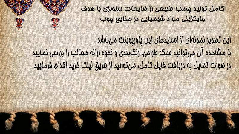 پاورپوینت کامل تولید چسب طبیعی از ضایعات سلولزی با هدف جایگزینی مواد شیمیایی در صنایع چوب