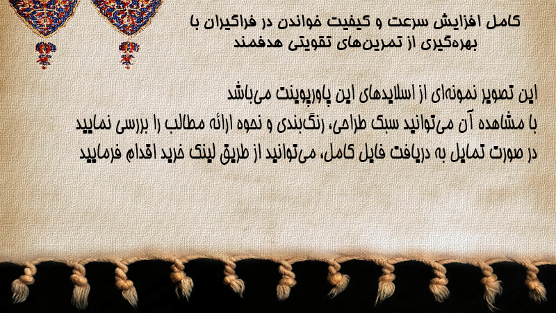 پاورپوینت کامل افزایش سرعت و کیفیت خواندن در فراگیران با بهرهگیری از تمرینهای تقویتی هدفمند