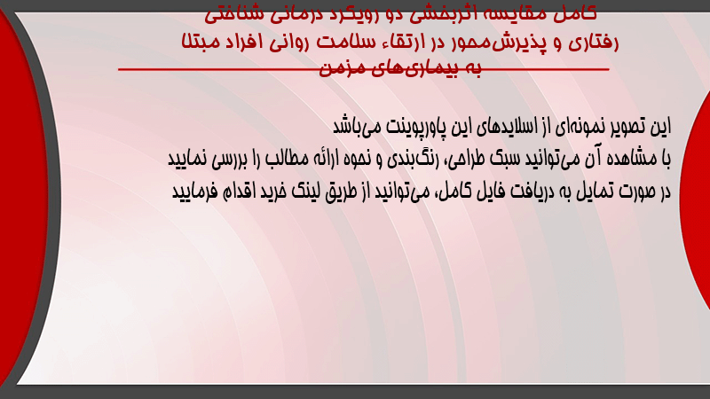پاورپوینت کامل مقایسه اثربخشی دو رویکرد درمانی شناختی رفتاری و پذیرشمحور در ارتقاء سلامت روانی افراد مبتلا به بیماریهای مزمن