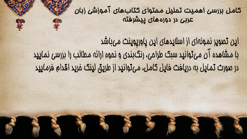 پاورپوینت کامل بررسی اهمیت تحلیل محتوای کتابهای آموزشی زبان عربی در دورههای پیشرفته