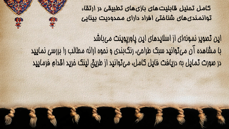 پاورپوینت کامل تحلیل قابلیتهای بازیهای تطبیقی در ارتقاء توانمندیهای شناختی افراد دارای محدودیت بینایی