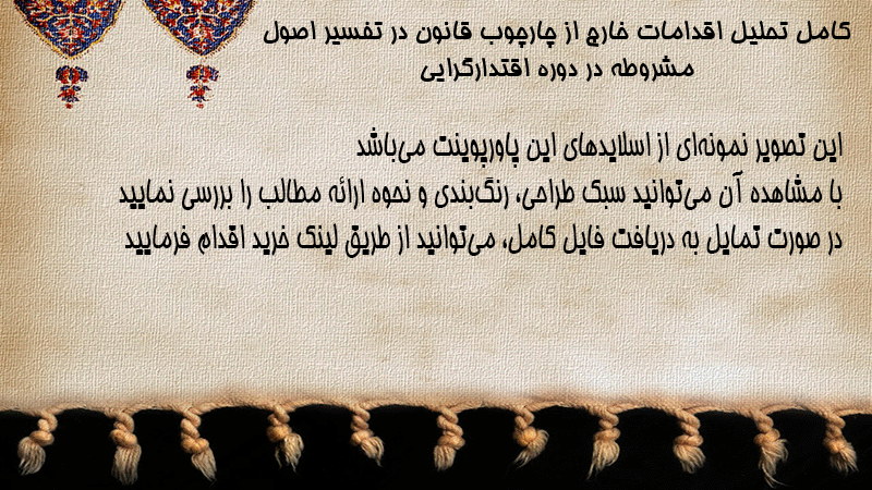 پاورپوینت کامل تحلیل اقدامات خارج از چارچوب قانون در تفسیر اصول مشروطه در دوره اقتدارگرایی