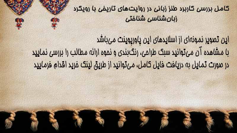 پاورپوینت کامل بررسی کاربرد طنز زبانی در روایتهای تاریخی با رویکرد زبانشناسی شناختی