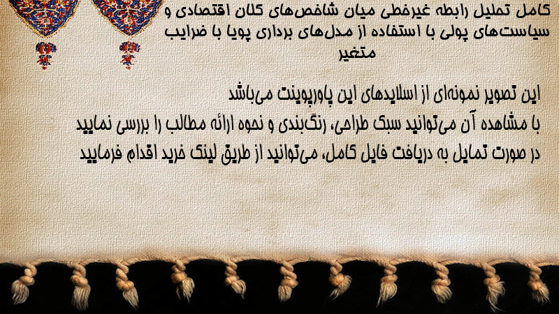 پاورپوینت کامل تحلیل رابطه غیرخطی میان شاخصهای کلان اقتصادی و سیاستهای پولی با استفاده از مدلهای برداری پویا با ضرایب متغیر