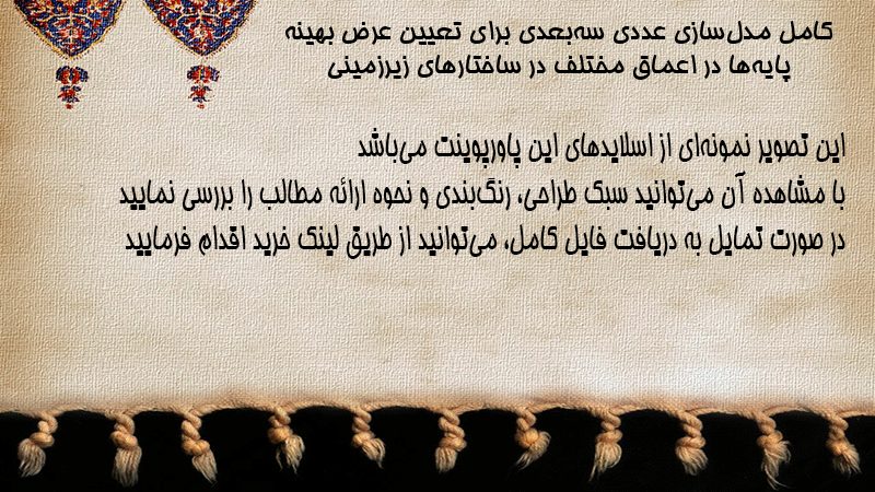 پاورپوینت کامل مدلسازی عددی سهبعدی برای تعیین عرض بهینه پایهها در اعماق مختلف در ساختارهای زیرزمینی