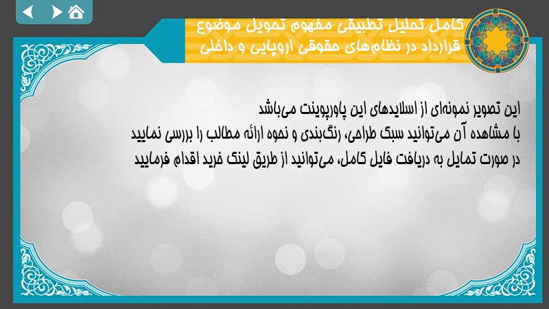 پاورپوینت کامل تحلیل تطبیقی مفهوم تحویل موضوع قرارداد در نظامهای حقوقی اروپایی و داخلی