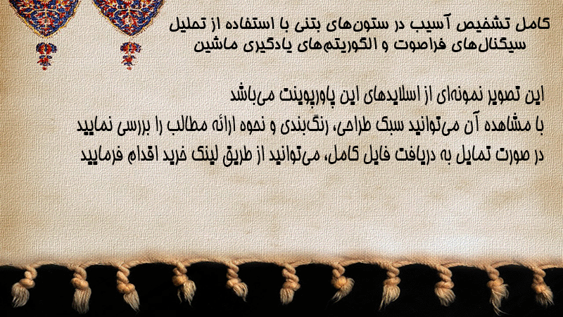 پاورپوینت کامل تشخیص آسیب در ستونهای بتنی با استفاده از تحلیل سیگنالهای فراصوت و الگوریتمهای یادگیری ماشین