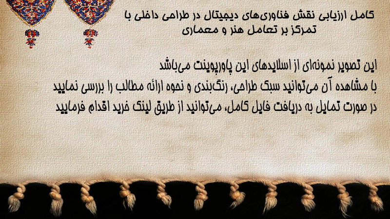 پاورپوینت کامل ارزیابی نقش فناوریهای دیجیتال در طراحی داخلی با تمرکز بر تعامل هنر و معماری