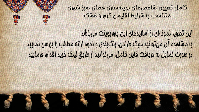 پاورپوینت کامل تعیین شاخصهای بهینهسازی فضای سبز شهری متناسب با شرایط اقلیمی گرم و خشک