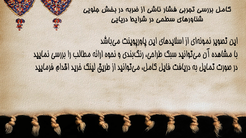 پاورپوینت کامل بررسی تجربی فشار ناشی از ضربه در بخش جلویی شناورهای سطحی در شرایط دریایی