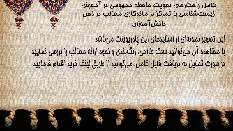پاورپوینت کامل راهکارهای تقویت حافظه مفهومی در آموزش زیستشناسی با تمرکز بر ماندگاری مطالب در ذهن دانشآموزان