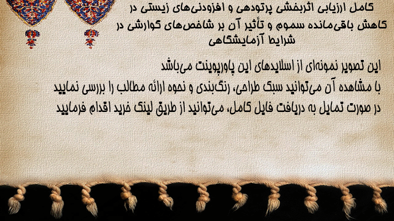 پاورپوینت کامل ارزیابی اثربخشی پرتودهی و افزودنیهای زیستی در کاهش باقیمانده سموم و تأثیر آن بر شاخصهای گوارشی در شرایط آزمایشگاهی