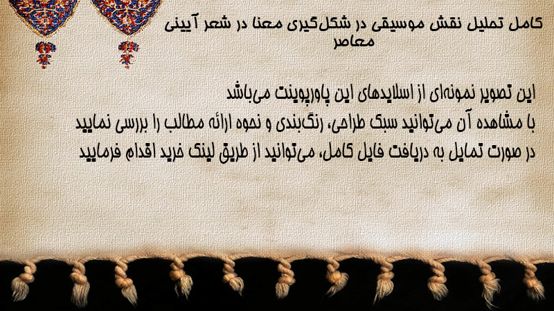 پاورپوینت کامل تحلیل نقش موسیقی در شکلگیری معنا در شعر آیینی معاصر
