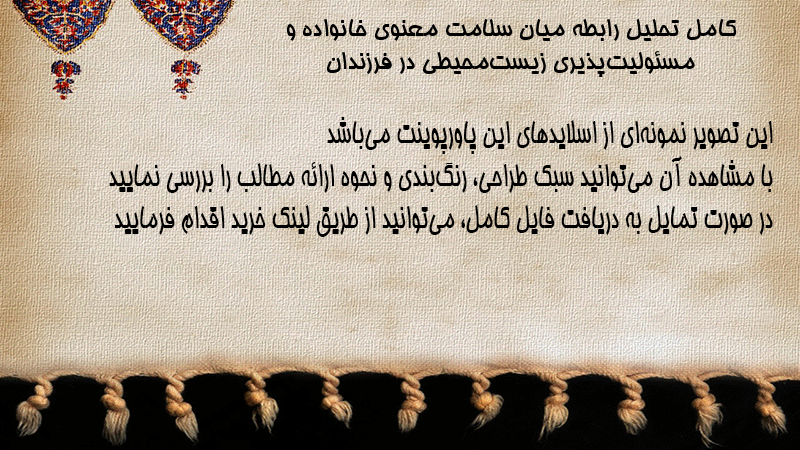 پاورپوینت کامل تحلیل رابطه میان سلامت معنوی خانواده و مسئولیتپذیری زیستمحیطی در فرزندان
