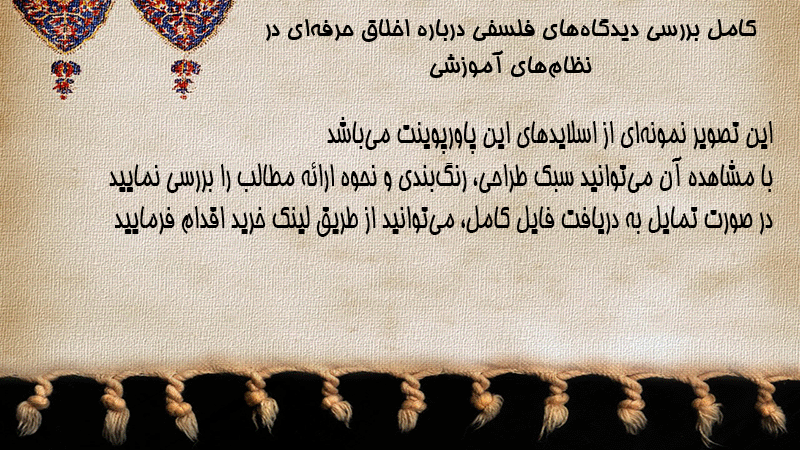 پاورپوینت کامل بررسی دیدگاههای فلسفی درباره اخلاق حرفهای در نظامهای آموزشی