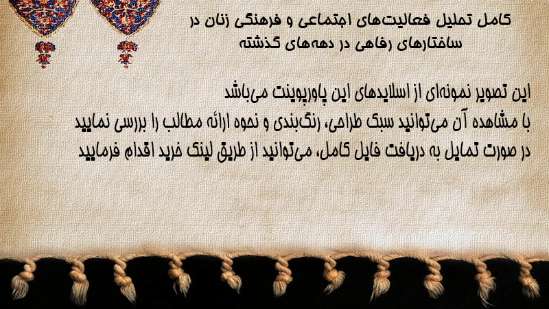پاورپوینت کامل تحلیل فعالیتهای اجتماعی و فرهنگی زنان در ساختارهای رفاهی در دهههای گذشته