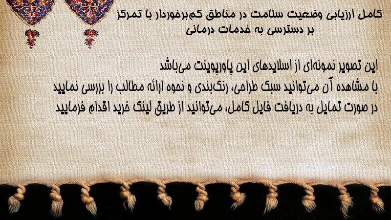 پاورپوینت کامل ارزیابی وضعیت سلامت در مناطق کمبرخوردار با تمرکز بر دسترسی به خدمات درمانی