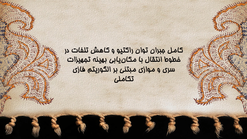 پاورپوینت کامل جبران توان راکتیو و کاهش تلفات در خطوط انتقال با مکانیابی بهینه تجهیزات سری و موازی مبتنی بر الگوریتم فازی تکاملی