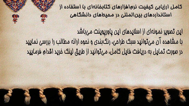 پاورپوینت کامل ارزیابی کیفیت نرمافزارهای کتابخانهای با استفاده از استانداردهای بینالمللی در محیطهای دانشگاهی