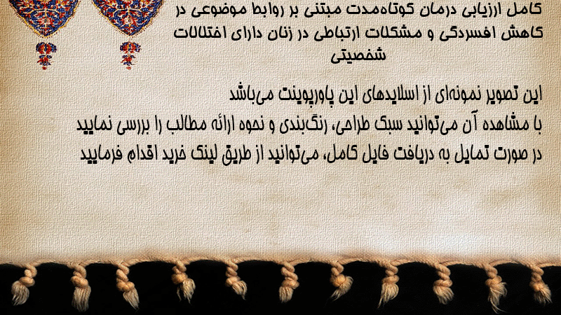 پاورپوینت کامل ارزیابی درمان کوتاهمدت مبتنی بر روابط موضوعی در کاهش افسردگی و مشکلات ارتباطی در زنان دارای اختلالات شخصیتی