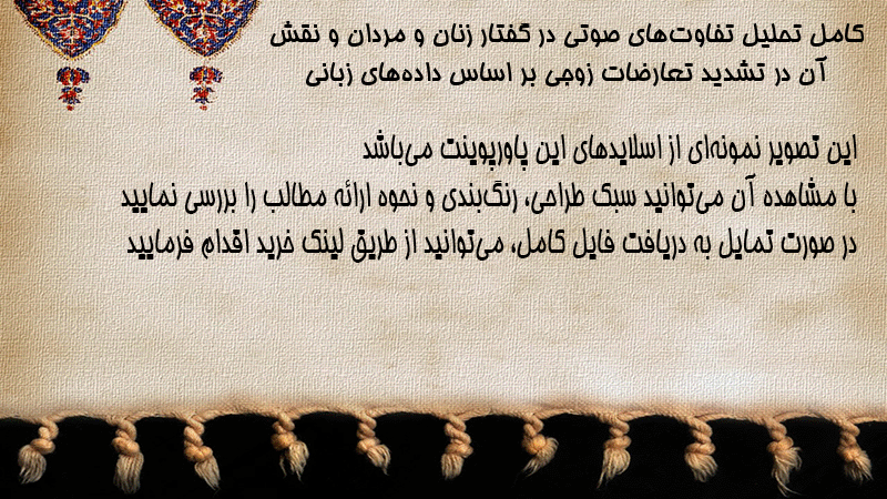 پاورپوینت کامل تحلیل تفاوتهای صوتی در گفتار زنان و مردان و نقش آن در تشدید تعارضات زوجی بر اساس دادههای زبانی