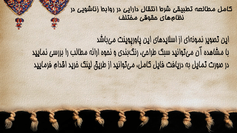 پاورپوینت کامل مطالعه تطبیقی شرط انتقال دارایی در روابط زناشویی در نظامهای حقوقی مختلف