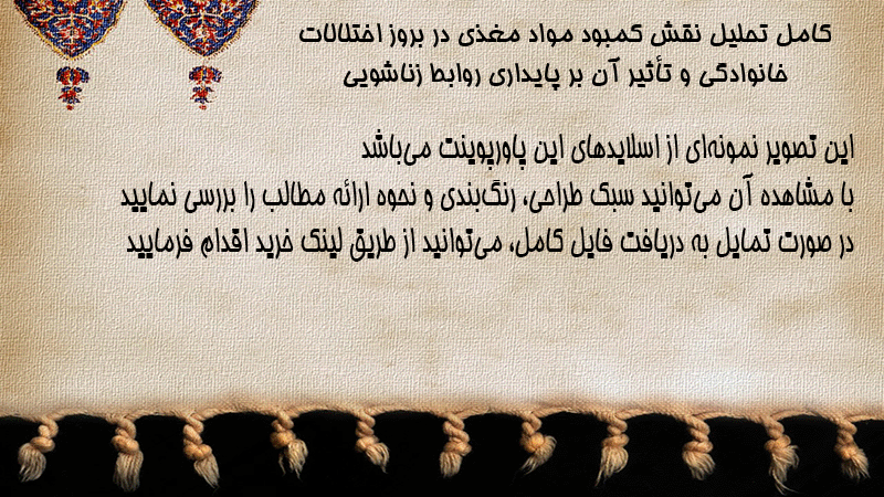 پاورپوینت کامل تحلیل نقش کمبود مواد مغذی در بروز اختلالات خانوادگی و تأثیر آن بر پایداری روابط زناشویی