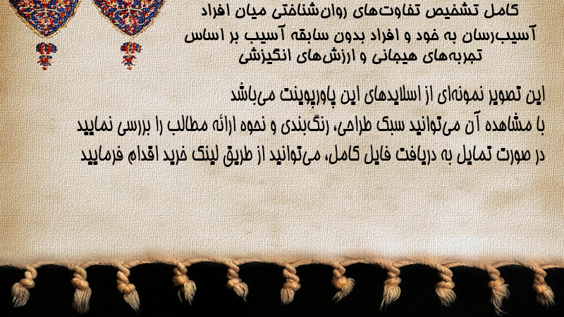 پاورپوینت کامل تشخیص تفاوتهای روانشناختی میان افراد آسیبرسان به خود و افراد بدون سابقه آسیب بر اساس تجربههای هیجانی و ارزشهای انگیزشی