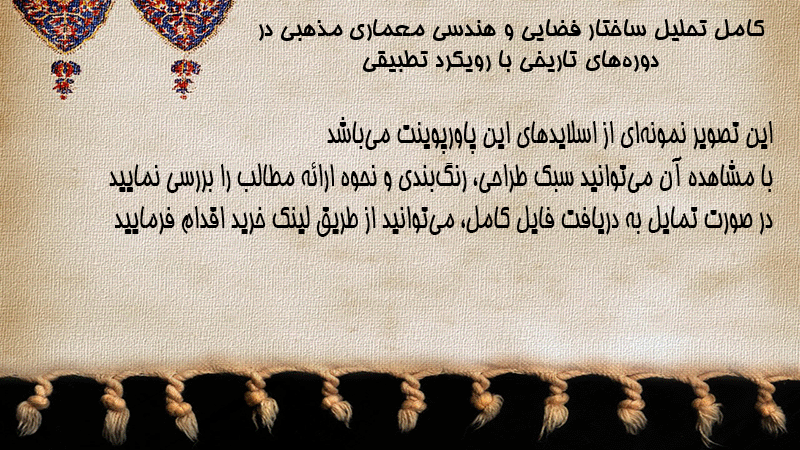 پاورپوینت کامل تحلیل ساختار فضایی و هندسی معماری مذهبی در دورههای تاریخی با رویکرد تطبیقی