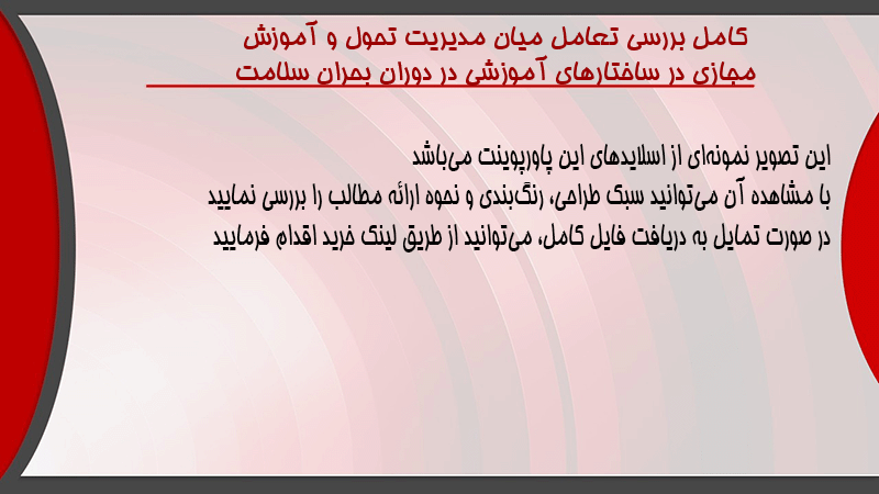 پاورپوینت کامل بررسی تعامل میان مدیریت تحول و آموزش مجازی در ساختارهای آموزشی در دوران بحران سلامت