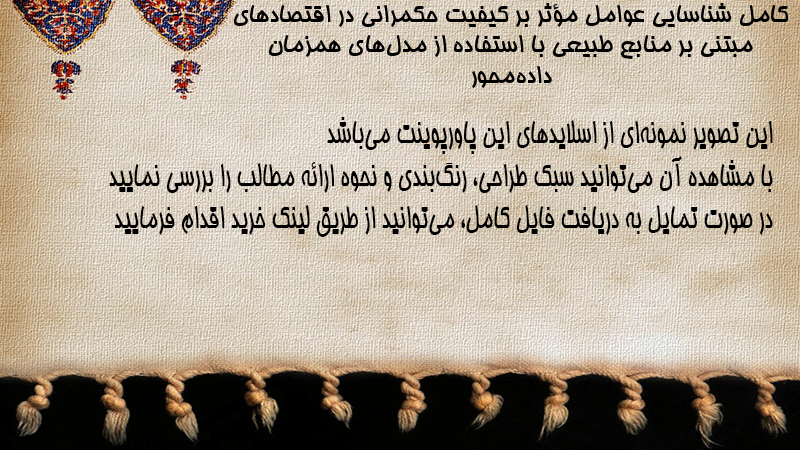 پاورپوینت کامل شناسایی عوامل مؤثر بر کیفیت حکمرانی در اقتصادهای مبتنی بر منابع طبیعی با استفاده از مدلهای همزمان دادهمحور