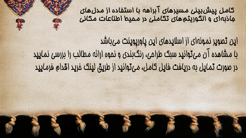پاورپوینت کامل پیشبینی مسیرهای آبراهه با استفاده از مدلهای جاذبهای و الگوریتمهای تکاملی در محیط اطلاعات مکانی