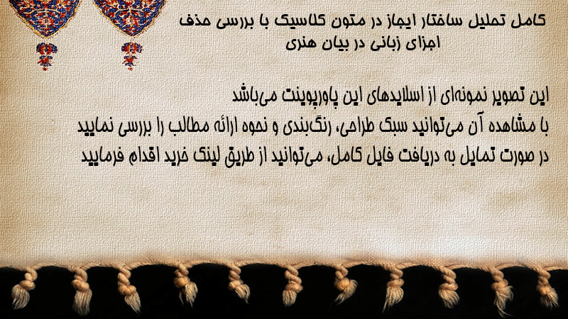 پاورپوینت کامل تحلیل ساختار ایجاز در متون کلاسیک با بررسی حذف اجزای زبانی در بیان هنری