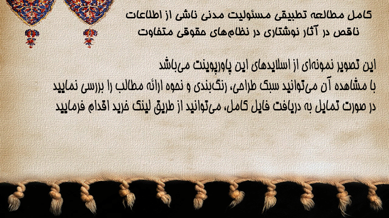 پاورپوینت کامل مطالعه تطبیقی مسئولیت مدنی ناشی از اطلاعات ناقص در آثار نوشتاری در نظامهای حقوقی متفاوت
