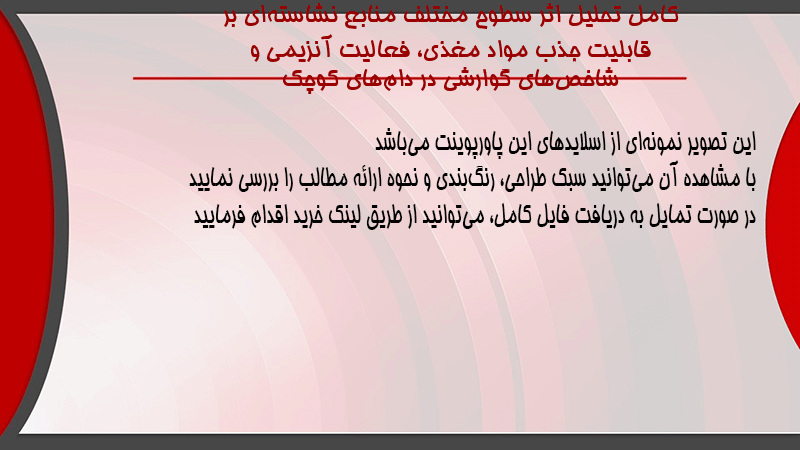 پاورپوینت کامل تحلیل اثر سطوح مختلف منابع نشاستهای بر قابلیت جذب مواد مغذی، فعالیت آنزیمی و شاخصهای گوارشی در دامهای کوچک