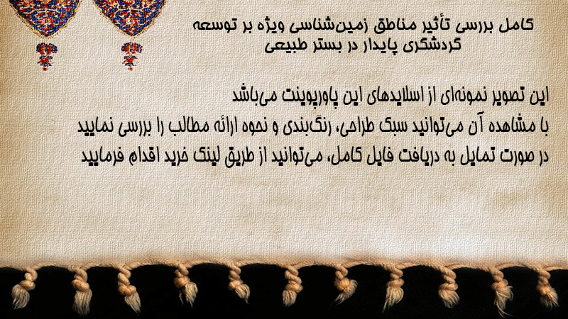 پاورپوینت کامل بررسی تأثیر مناطق زمینشناسی ویژه بر توسعه گردشگری پایدار در بستر طبیعی