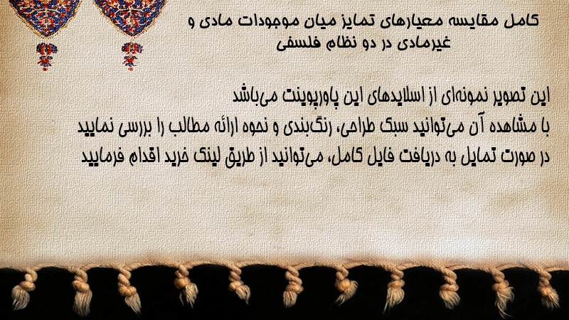 پاورپوینت کامل مقایسه معیارهای تمایز میان موجودات مادی و غیرمادی در دو نظام فلسفی