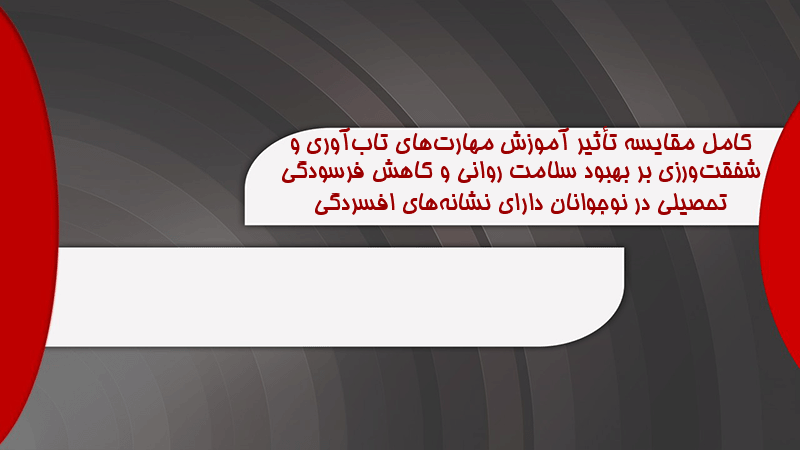 پاورپوینت کامل مقایسه تأثیر آموزش مهارتهای تابآوری و شفقتورزی بر بهبود سلامت روانی و کاهش فرسودگی تحصیلی در نوجوانان دارای نشانههای افسردگی
