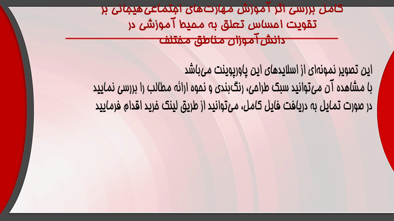 پاورپوینت کامل بررسی اثر آموزش مهارتهای اجتماعیهیجانی بر تقویت احساس تعلق به محیط آموزشی در دانشآموزان مناطق مختلف