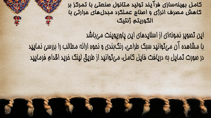 پاورپوینت کامل بهینهسازی فرآیند تولید متانول صنعتی با تمرکز بر کاهش مصرف انرژی و اصلاح عملکرد مبدلهای حرارتی با الگوریتم ژنتیک
